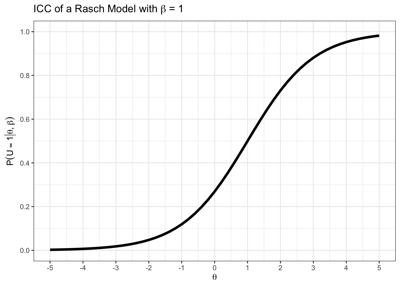 p1 <- teachIRT::p_rasch(theta = 0, beta = 0)